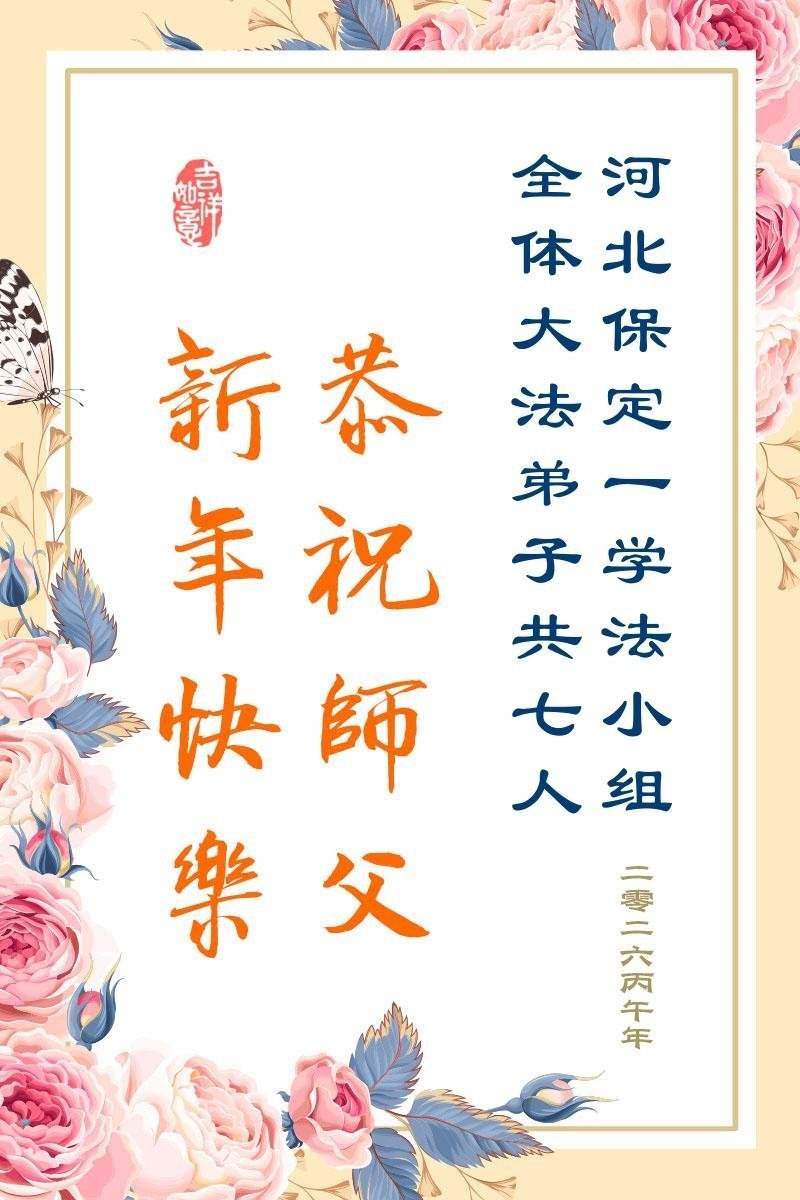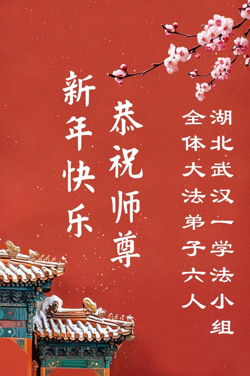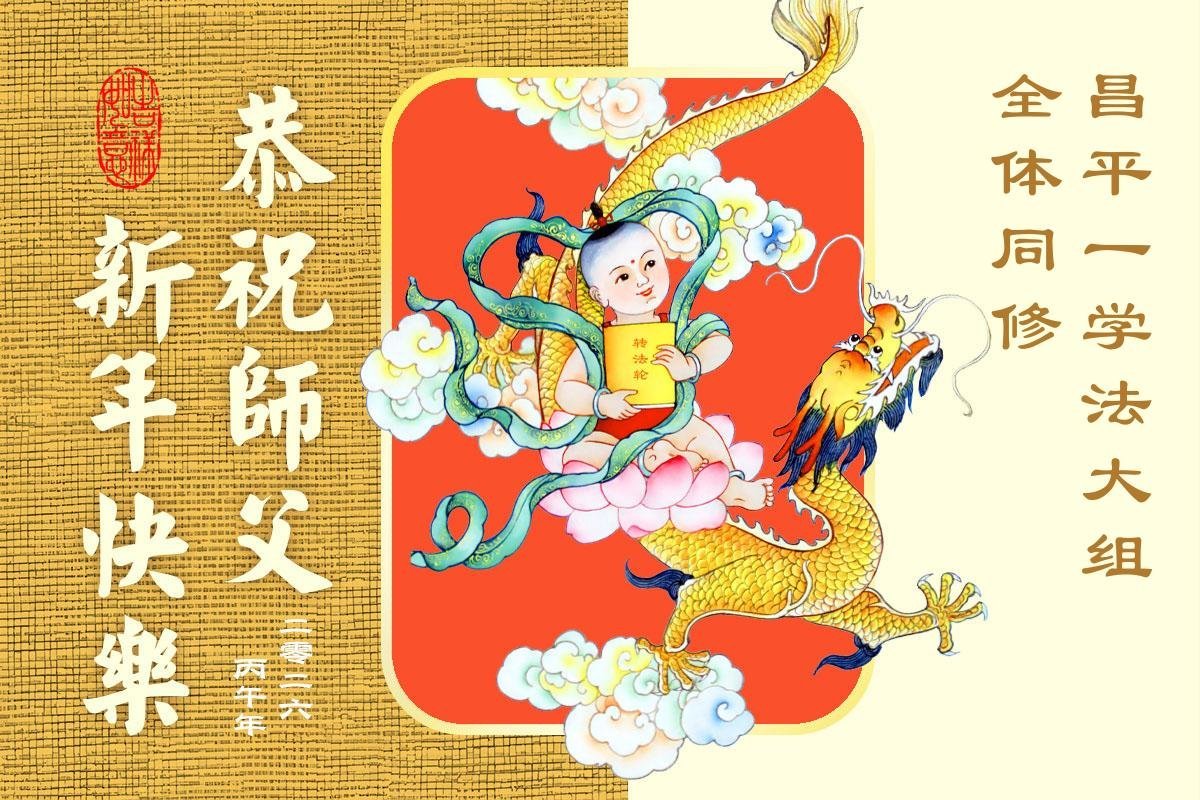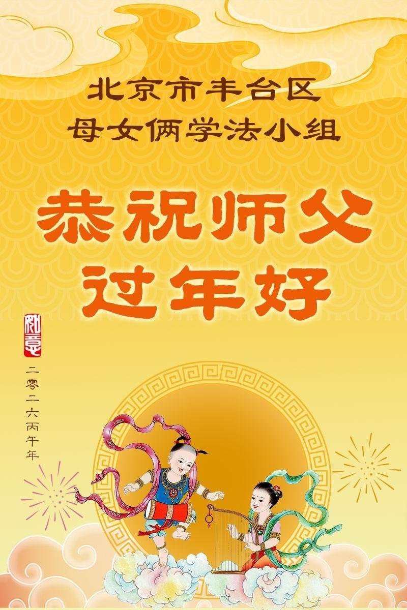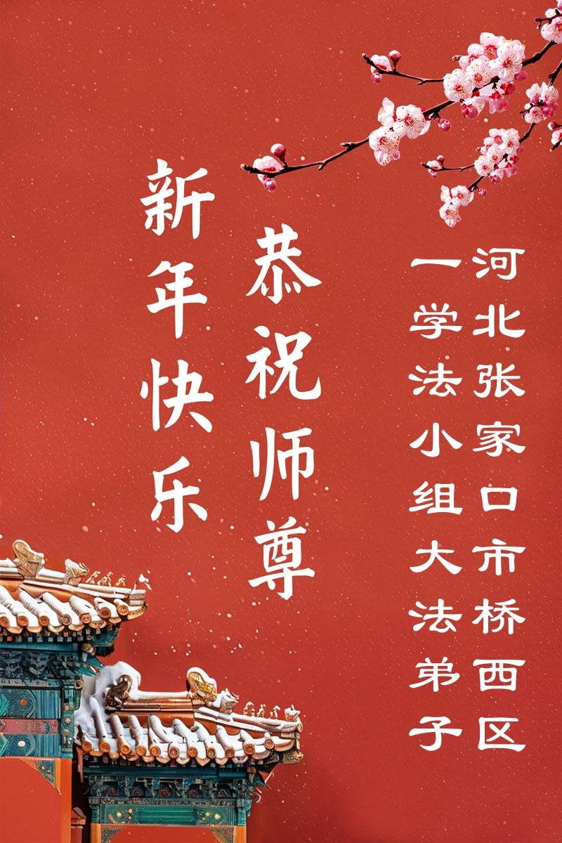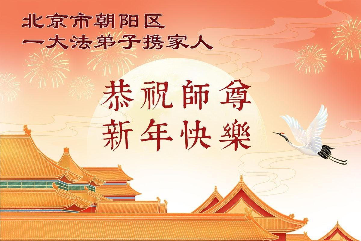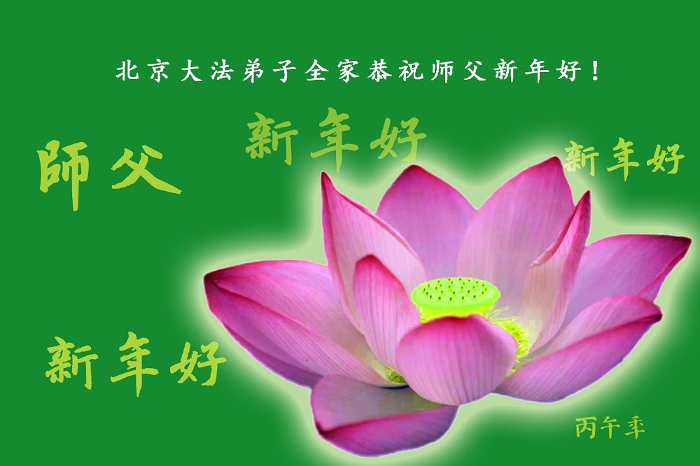 在新的一年到来之际,我们北京学法小组全体大法弟子向慈悲伟大的师尊拜年!师父您好!您辛苦了!我们有信心和决心在新的一年遵照师尊的谆谆教导,修去人心,做好三件事,学法修心向内找,讲真相,做个名副其实的大法弟子,跟师父回家。