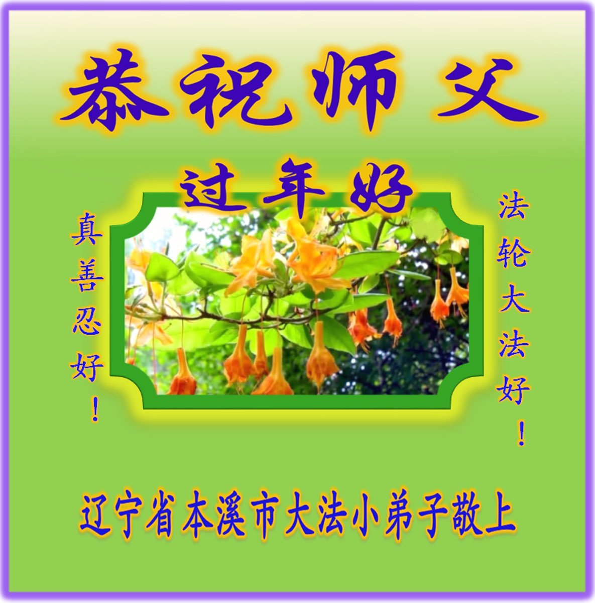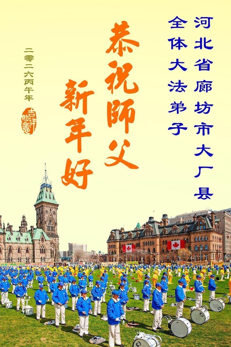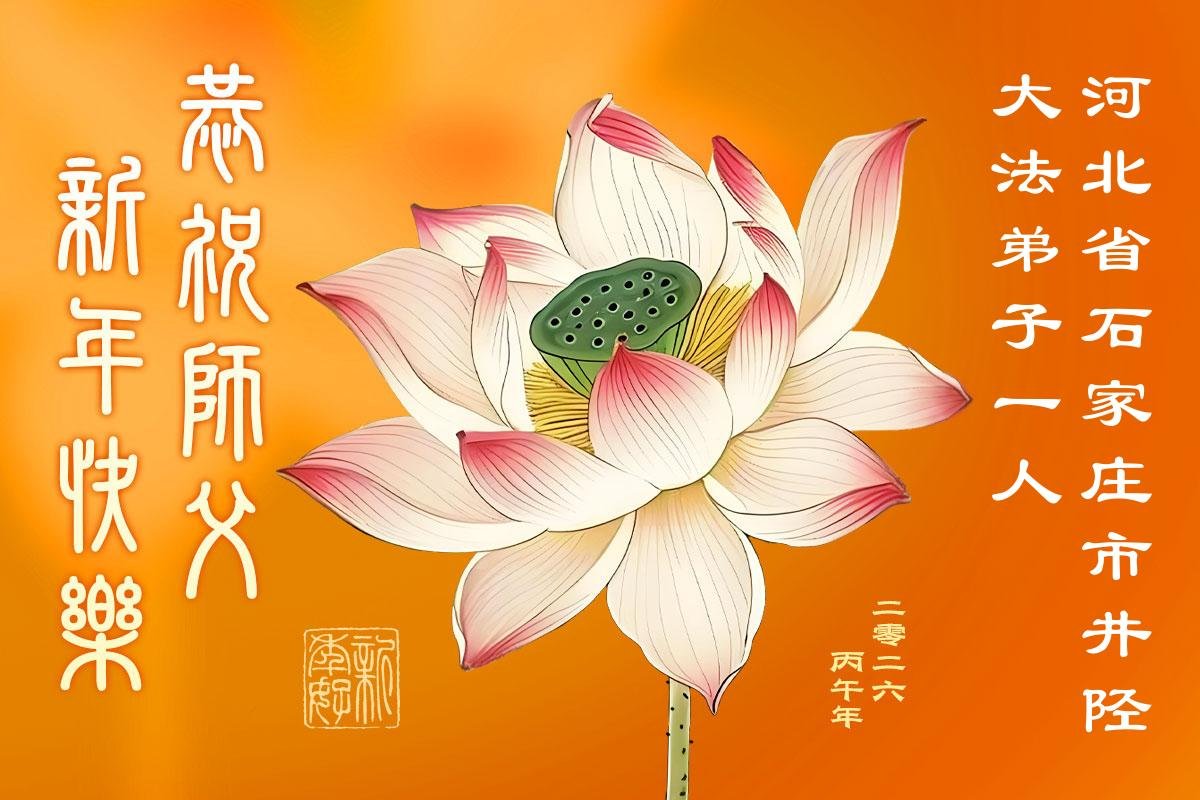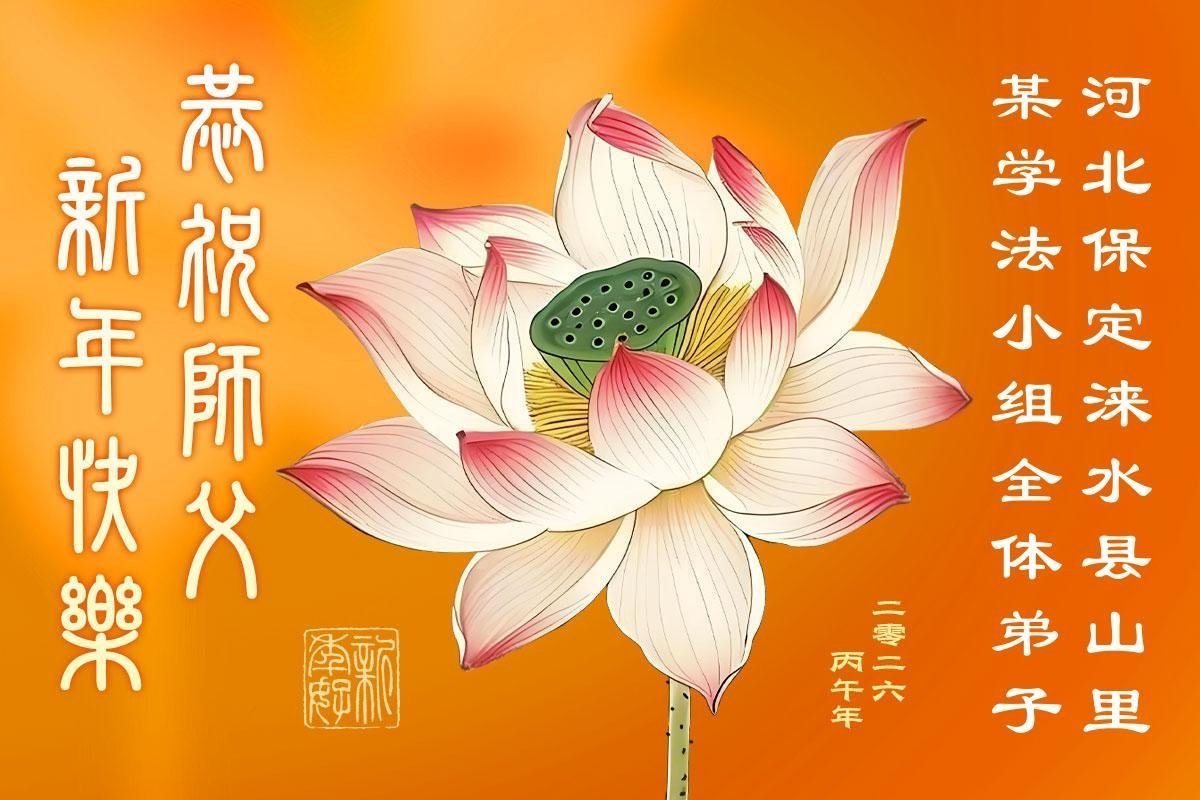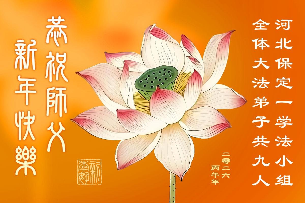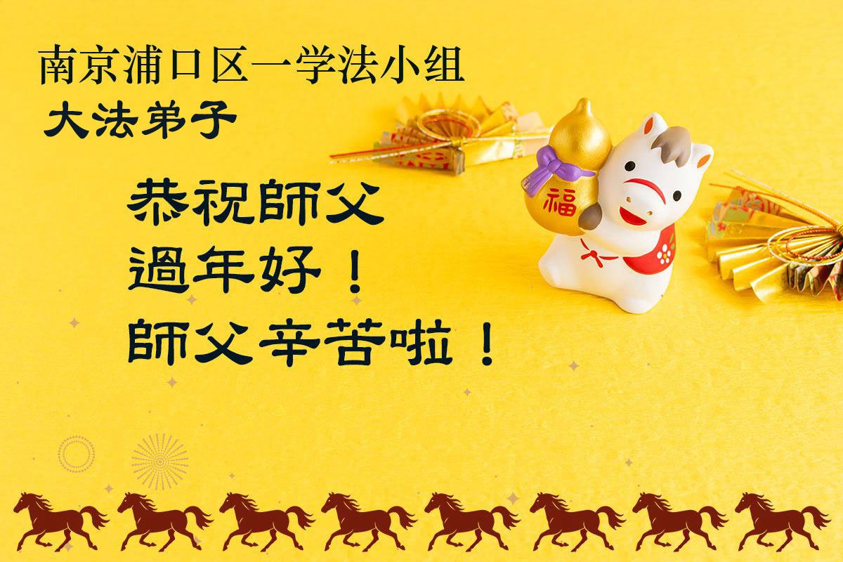 在新的一年到来之际,我们北京学法小组全体大法弟子向慈悲伟大的师尊拜年!师父您好!您辛苦了!我们有信心和决心在新的一年遵照师尊的谆谆教导,修去人心,做好三件事,学法修心向内找,讲真相,做个名副其实的大法弟子,跟师父回家。