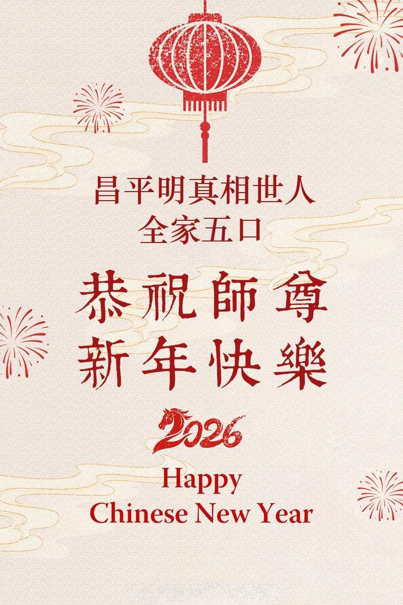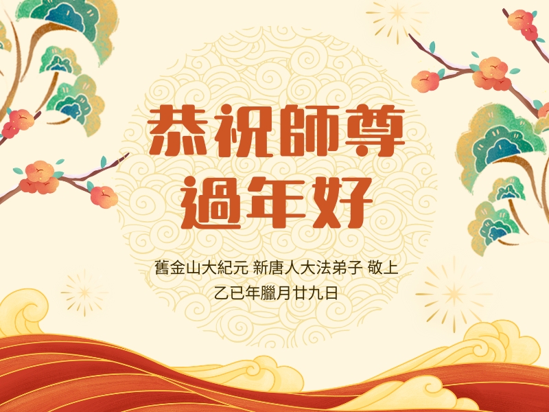 恭祝师父过年快乐!感恩师父慈悲苦度,谢谢师父!师父您辛苦了!能做您的弟子是我们的幸运,荣耀,神圣。我们珍惜这万古机缘。走师父安排的路。让我们与更多的众生迎接那仙乐响起,金莲盛开大法春天的到来。随师回家。
