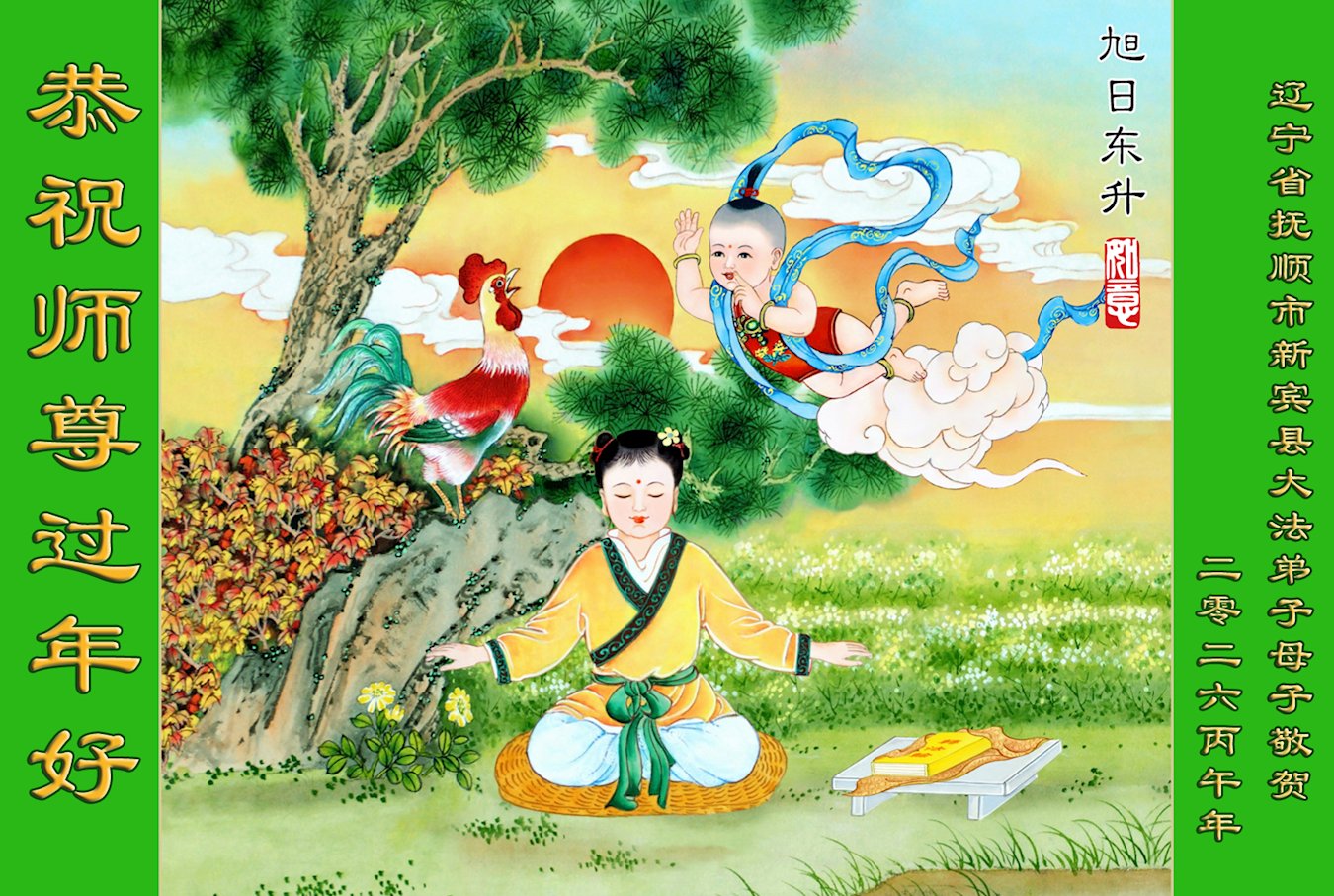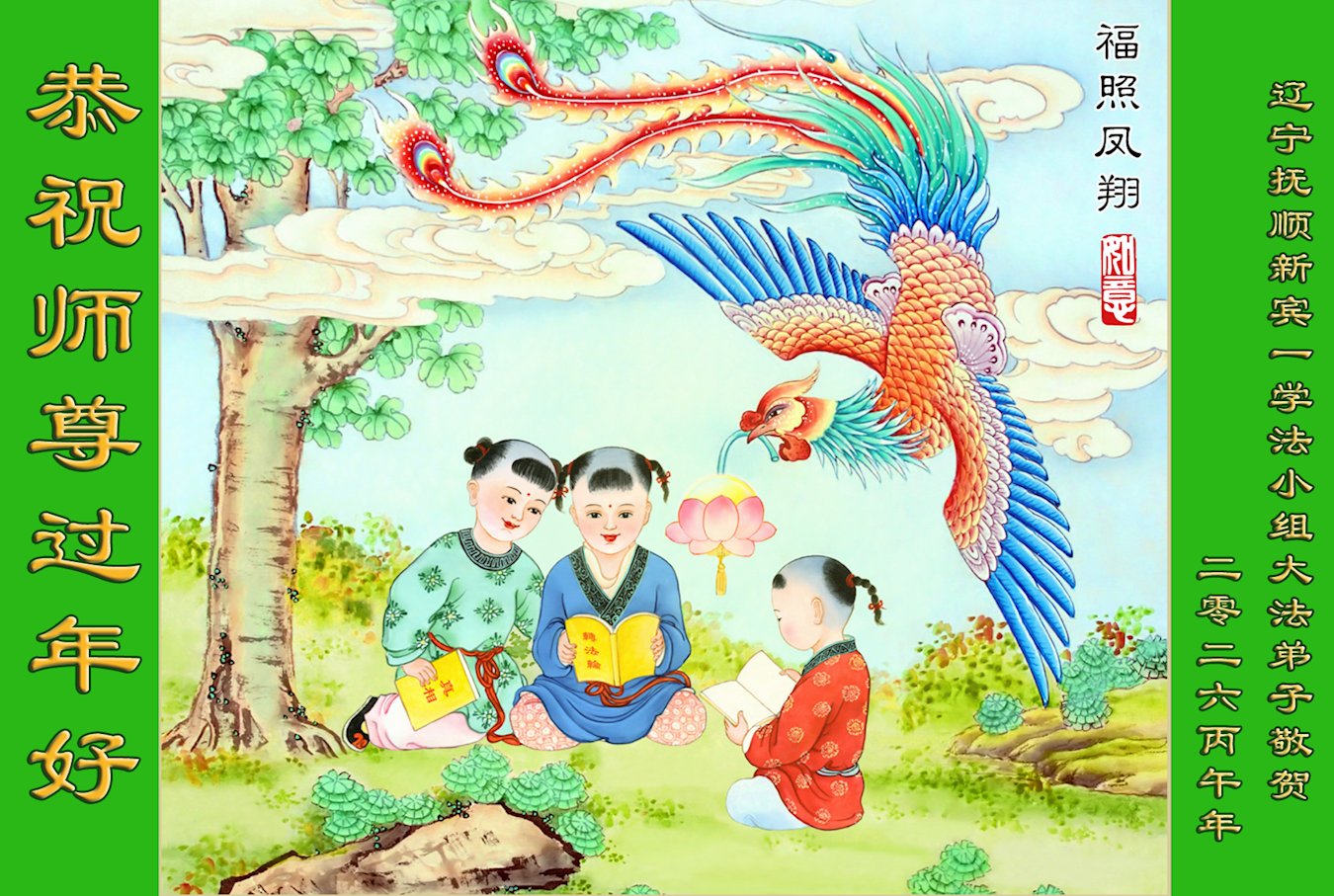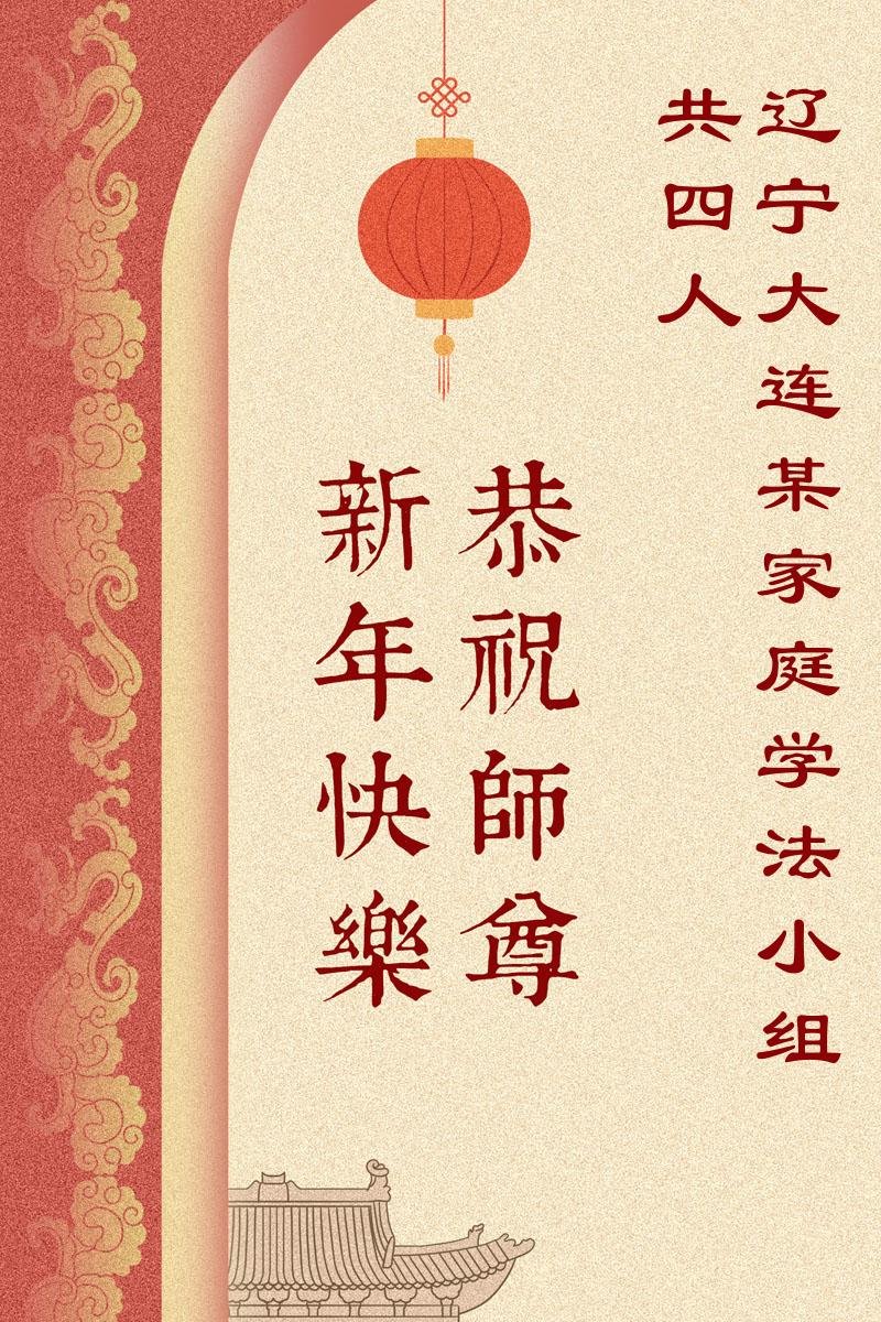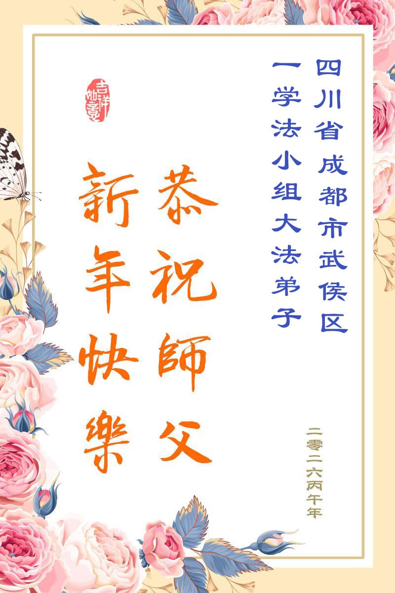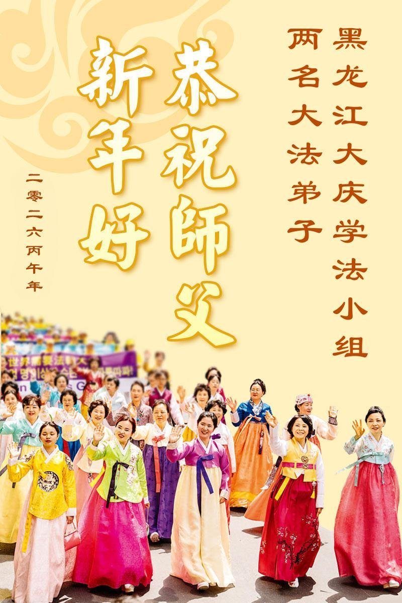 恭祝慈悲伟大的师尊过年好!弟子们成立学法小组时,想到没被迫害之前师尊当年给弟子们留下的炼功场、学法场,那壮观的景象,现在还依然历历在目,大家在一起学法、炼功、家庭和睦、走路生风,整个社会都处于和睦状态……弟子们会多学法、以法为师、共同精進、共同配合,做好三件事,圆满随师还。