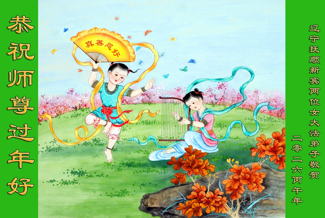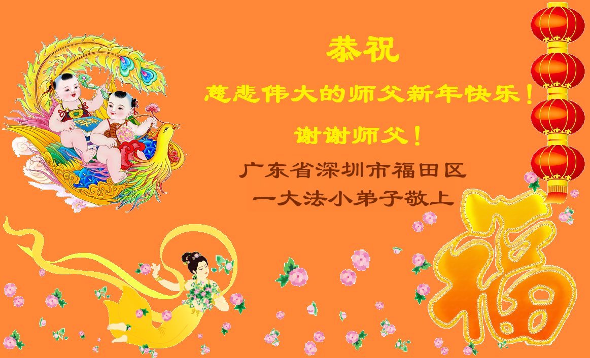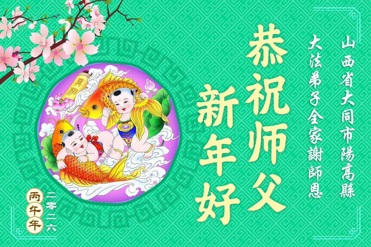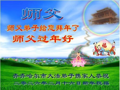 今天是腊月初一,快过大年了,我们姊妹俩在此给尊敬的师父拜年!感恩师父的慈悲普度,恭祝师父新年好!在新的一年里,我们会听师父的话,抓紧时间修好自己多救人。让更多的众生明白:法轮大法好,真善忍好!