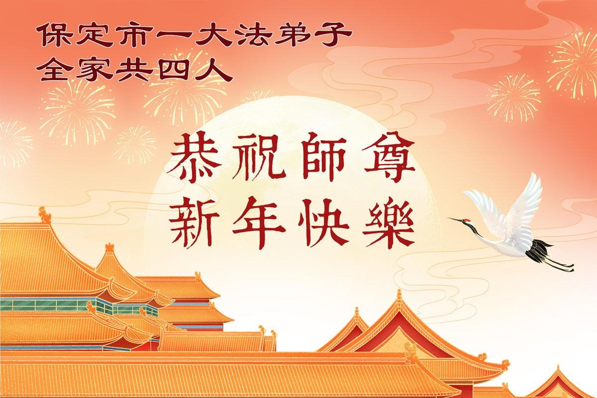 感谢师父对弟子们时时刻刻的看护!为了我们这些在外地的大法弟子不至于落下,安排机缘让我们天南海北的大法弟子能够相识,能在一起学法、修炼。我们都无比的感恩师父给我们这个机会,谢谢师父!弟子们也会把握好这个机会,精進实修,走好师父给安排的路。师父为弟子们的修炼操尽了心,费尽了心血,一步一步的引领着我们走好修炼的路。没有语言能表达弟子对师父的感恩!师父您辛苦了!谢谢师父!新年到来的时刻,我们在外地的学法小组四人给师父拜年了!