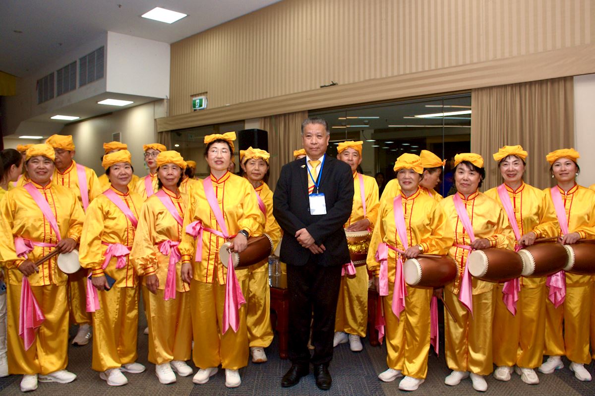 ![]() 图3:澳洲越南社区协会(VCA)维州分部主席阮维光(Duy Quang Nguyen)先生和腰鼓队成员合影,感谢学员们的精彩表演,并再次邀请法轮功团体参加其余庆典。 |