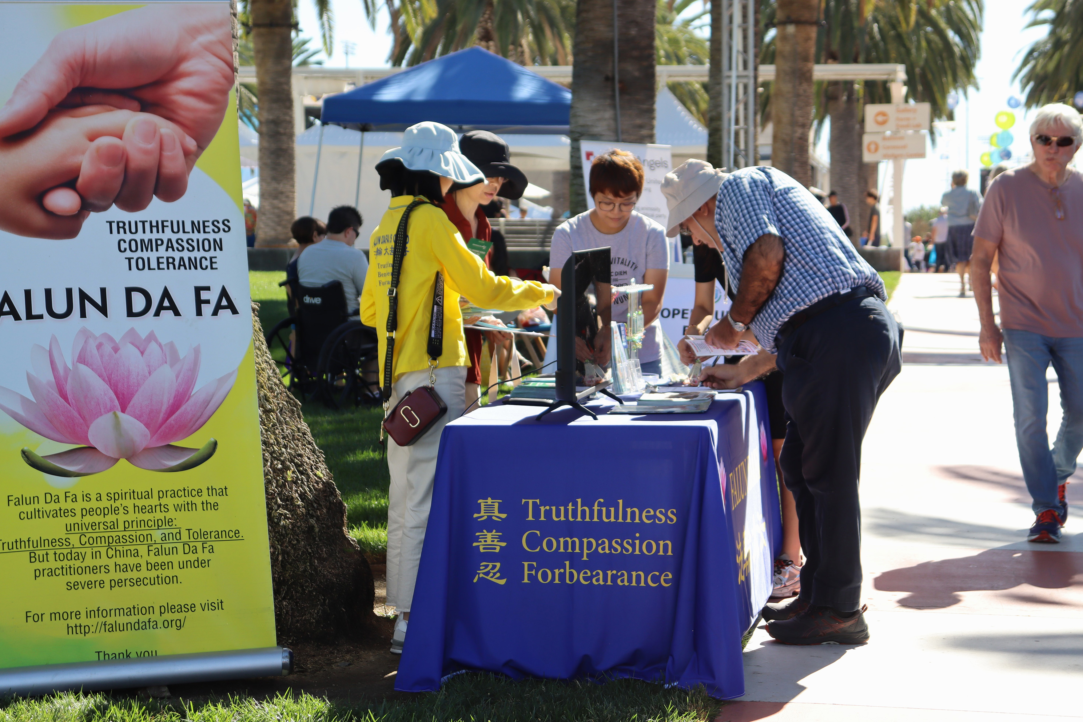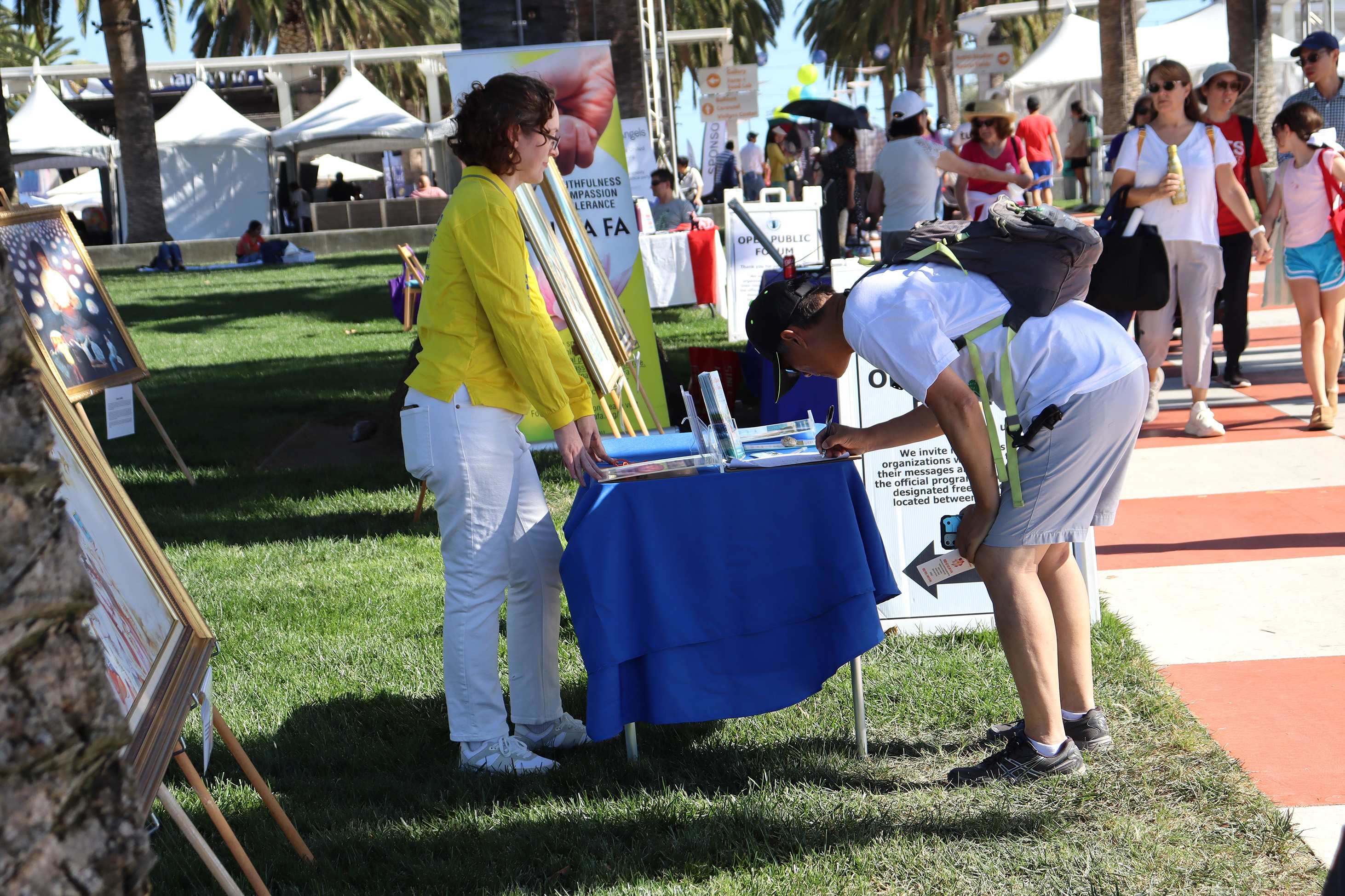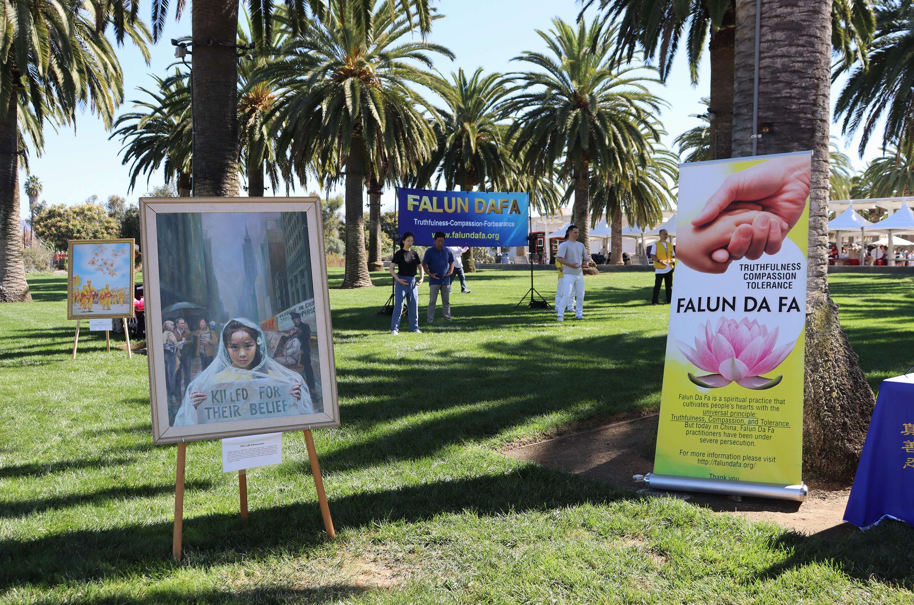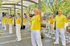 加州尔湾地球村节 法轮功学员展示功法 【明慧网】 |