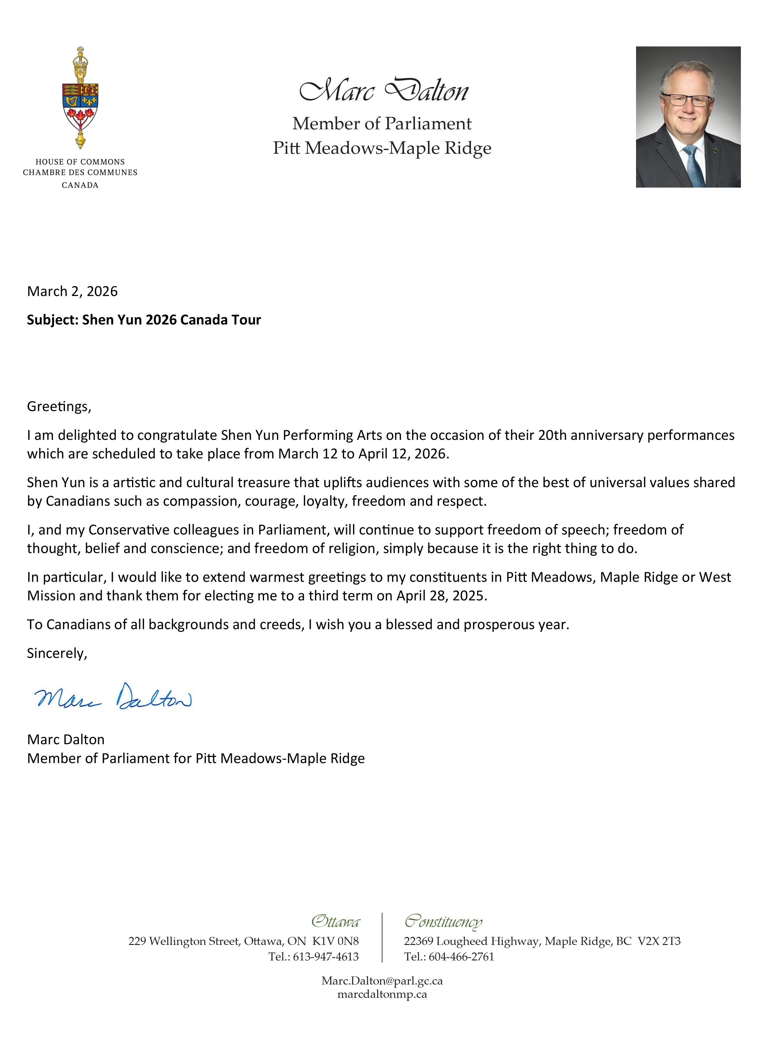 | 神韵莅临温哥华 加拿大政要褒奖恭贺 【明慧网】 |