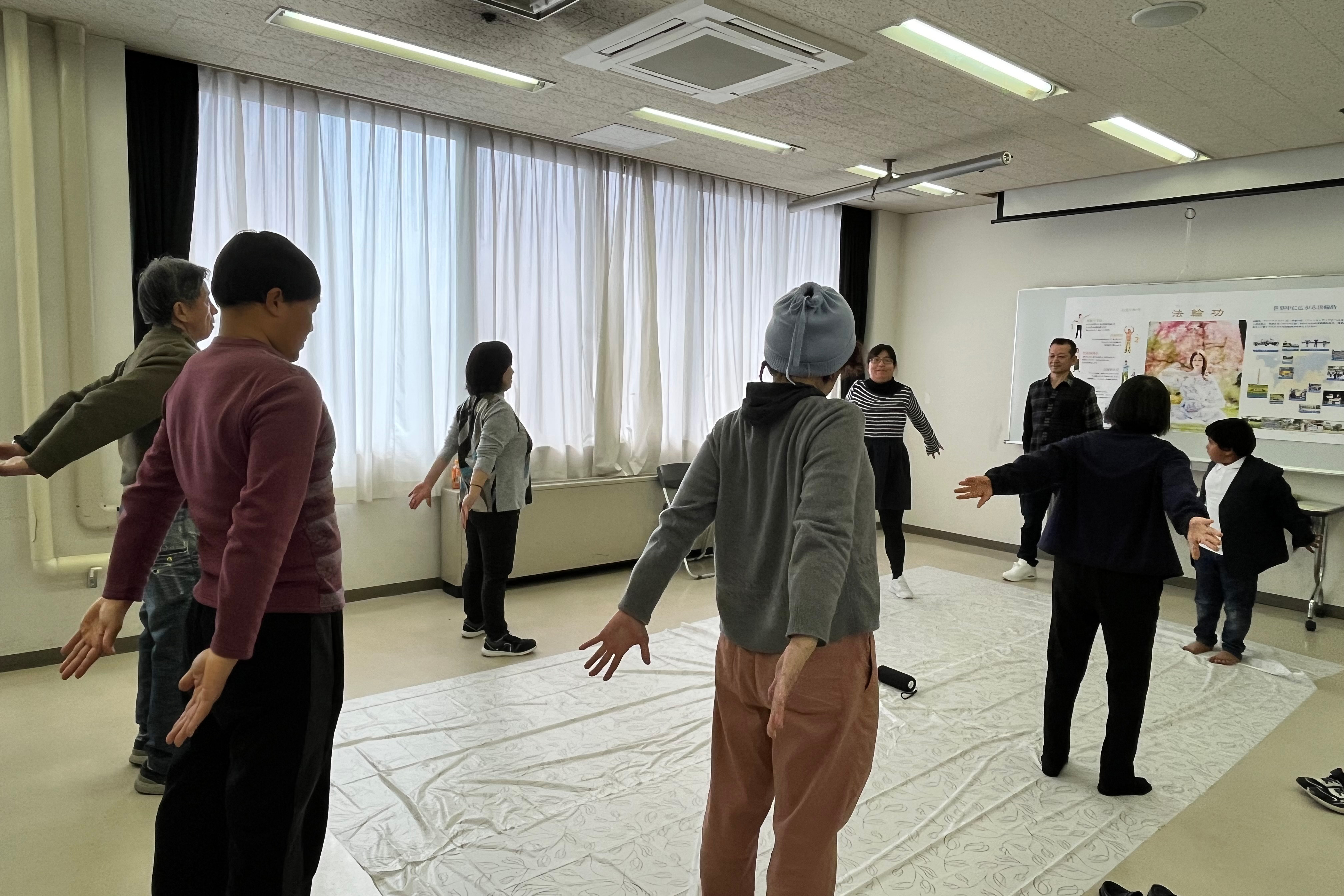 日本广岛庆典活动 观众现场学炼法轮功 【明慧网】 |