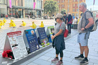 | 奥克兰商业湾展现法轮大法风采 吸引民众驻足了解 【明慧网】 |