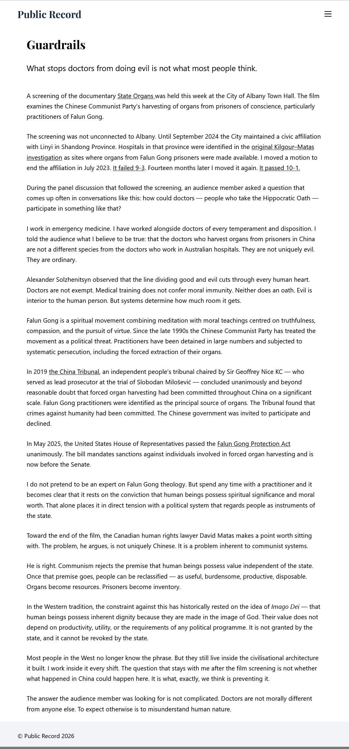 西澳海滨城市上映《国有器官》 议员谴责中共恶行 【明慧网】 |