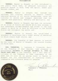 新泽西州东汉诺威市市长Lawrence Colasuro先生宣布2000年12月4-8日为东汉诺威市“法轮大法周”,并号召全体东汉诺威市人民和他一起向在各族人民中倡导真善忍而做出贡献的李洪志大师致敬!