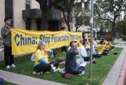 【明慧网洛杉矶消息】洛杉矶法轮功学员中领馆前的和平请愿已进行了两周。今天学员们依旧准时来到中领馆前。