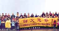 【明慧网2001年12月31日】2001年12月23日加拿大美国的大法弟子200多名,在著名的尼亚加拉大瀑布旁,向我们至尊至敬的师尊说一声:“师父您好!”