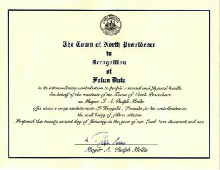 【明慧网2001年2月16日】 罗德岛州北普罗维登市市长嘉奖法轮大法,并向法轮大法创始人致敬。(2001年1月22日)