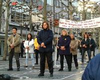 这些惨不忍睹的受迫害照片,吸引了不少路人驻足观看和询问。人们都被这些照片震惊了。许多人和我们长时间地讨论,也有许多人问道:我们这些普普通通的人,难道我们的支持和关心真的管用吗?他们得到了肯定的答复。是啊,如果每一个人都知道在中国发生在法轮功学员身上的事情的真相,每一个人都不被江泽民犯罪集团的谣言迷惑,每一个人都发出正义的声音,那么江泽民之流会受到有力的震慑,而更多的有缘人会得到美好的未来。这就是我们,法轮功学员在这里举行烛光纪念活动的出发点。行人们得到了满意的答复,拿着我们的材料,若有所思地离去。