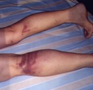 注:所附照片为2001年2月(即受刑一个多月后)所拍,所以不能完全反映当时受伤的严重情况。
