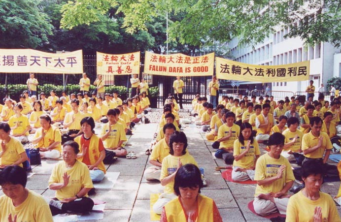 对于董建华的肆意诽谤,今天下午约一百六十名香港法轮大法弟子前往政府合署向董建华递交请愿信,表达对其言论的强烈不满和抗议。下午2:30弟子们在立法会大楼对面的遮打花园集合,拉起“法轮大法、真善忍”;“法轮大法、利国利民”等的横幅,缓步游行到政府合署大楼外。上至七旬老人,下至9个月的婴儿,都参加了此次活动。一位区议员还主动来要求参加我们的游行,他说董特首做得太过分了,他要为法轮功鸣不平。