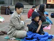 在最近这三次发正念的活动中,弟子们对发正念的作用和意义越来越清楚,参加集体发正念的人数也一次比一次多。虽然这次要凌晨3、4点就出门,但参加的人数是历年来最多一次。其中有俩位怀孕9个月的孕妇,有1-3岁多的小弟子,有年逾80岁的老弟子,也有得法100多天的新弟子,还有白人弟子。