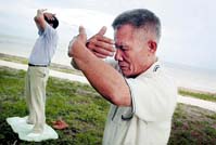 海岸边的大橡树下,有一块安静的绿洲。十几人静静地站成一圈,随着一个小录音机播放的柔和音乐整齐地运动着。他们象是在翩翩起舞,只是以慢动作进行。