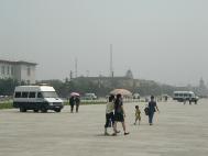 • 天安门广场上停着的准备押送大法弟子的警车
