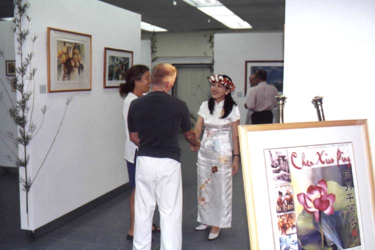 希望更多世人能感受到修炼法轮大法不但使人身心受益而且使艺术达到更高境界,并在欣赏宁静,祥和,美好的艺术作品的同时了解法轮大法及受迫害的真相。展览馆的进口处摆放着一些中英文的大法真资料,展厅里轻轻流淌着普度的音乐,仿佛带着你进入了另一个超凡脱俗的世界,仿佛呼唤着世人“切莫机缘再误”。