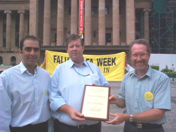 开幕式当天是布里斯本盛夏最热的一天,气温高达摄氏40度,因此,不少游人步入装有冷气设施的厅内避暑,正好观看大法图片展。市政厅外的学员不断向游人过客介绍法轮大法,其中包括许多中国大陆来的游客。学员向他们派发资料,讲清真相,还不顾灼热的阳光,向游人演示功法,活动一直延续到傍晚。晚上,学员们又在市政厅前举行了烛光守夜活动,与世界各地类似活动一起谴责中国近期对法轮大法弟子的又一轮逮捕、酷刑折磨、虐杀的暴行。