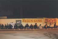 第三次集体学法交流是一月份,在奥格斯堡(Augsburg)是和洪法日和守夜结合在一起的。我们周六晚上来到慕尼黑的中国驻德国领事馆前,整个周六的洪法活动是在和谐的气氛中进行的,出乎意料的是又来了许多的学员,那天晚上慕尼黑的学员第一次得到了特许,被允许在领事馆前的广场上举行守夜的活动。以前总是只被允许在一条很窄的人行道边上,当我们还象以往那样在被已经停满的汽车挡住视线的车后边坐着时,一个警察从远处给我们打招呼,来到我们面前非常友好地告诉我们:“你们被允许在对面的广场炼功。”他很高兴地过来告诉我们这个消息。那晚的天气特别的好,刮了一整天的风这时也停了,荧荧的烛光整夜都在燃著。