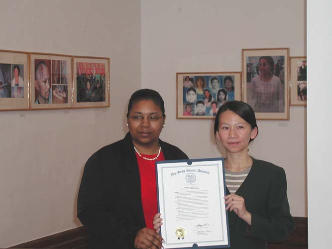 【明慧网2002年3月31日】由美国新泽西州泽西市政府和“法轮功之友”共同主办的《正法之路》图片展览于3月28-4月5日在泽西市公共图书馆展出。3月28日下午,主办单位在展厅内举行了开幕式。泽西市所在选区的州众议员辛西瑞丽(Elba Perez-Cinciarelli )派助手前来宣读了对法轮功的褒奖令,“法轮功之友”执行主任阿兰.艾德勒先生也在开幕式上致辞。