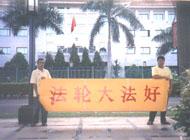 ◇发正念 展神通。南方某县几名大法弟子5月13日世界法轮大法日晚上到外面挂横幅,他们在一建筑楼上挂一条九米长横幅,被几个便衣发现并对着楼房围了上来,几个弟子就呆在那里一起发正念,便衣直在楼上转圈,最后也没找着人就走了,几名大法弟子安全回家。横幅一直在那挂了三天,有力地震慑了邪恶。