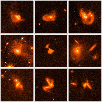“我们正在看到宇宙一连串演变过程的最后一步,小块物体结合起来而建立更大物体”,伯恩说,“我们看到了物质从星系被碰撞打出去而形成恒星带,物质收缩而形成多个核心聚集在一起。还有一部分,一个星系‘巢’内的所有星系合并起来。”