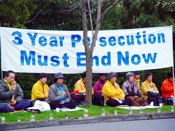 我在中国驻奥克兰总领事馆门前炼功(图)