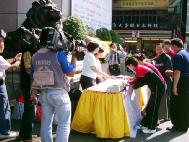 亲民党立委刘文雄服务处陈主任:法轮功学员发挥人饥己饥,人溺己溺的精神,有四位大陆新娘学员被关就发起营救活动,爱同胞爱学员的心令人感佩,刘文雄委员将发动立法院鼎力支持法轮功,给没人权的大陆压力,早日释放大陆新娘。