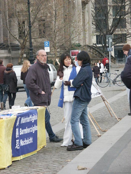 2003年11月23日,来自德国、奥地利、法国、比利时、荷兰、英国、爱尔兰、瑞典、波兰、意大利、西班牙、俄罗斯、美国、澳大利亚、以色列等十几个国家的一千多名大法弟子参加了在德国柏林举行的欧洲法会。慈悲的师尊亲自致电预祝法会圆满成功。十几名来自各国的大法弟子和同修们分享了他们在正法时期讲清真相和救度众生中的体会。在法会前后的一系列自由交流中,各国学员们针对诉江案和对其它迫害法轮功的中国官员的起诉进行了充份的讨论。