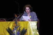 她说:『巴勒斯坦人们仍然在被侮辱、屠杀,自治权利被剥夺。我们也看到这一地区天空中聚集着黑云,这是一场战争的不好的兆头,它肯定将违反所有人权,尤其是生存权。』