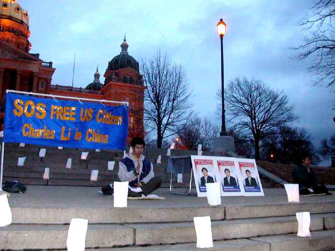 当晚明尼苏达州的亚美新闻(ASIAN AMERICAN PRESS)报社记者冒雨赶来,专程采访法轮功学员的呼吁活动。虽然明州天气寒冷,阴雨不断,一些本计划来的西方媒体由于恶劣的天气和集中报导美伊开战未能到场,但是学员们互相提醒保持正念,形成一个整体,坚信大法弟子的强大正念能冲破旧势力的安排,最大限度地救度一切可救度的众生。风雨中,学员们多次发正念,并一直坚持到活动结束。