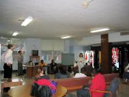 学员们在讲座上概括地介绍了法轮大法,演示了功法动作,并回答了学生们的问题。学生们在讲座上非常认真的听,在学员们示范功法动作时,又认真的学习。这次的讲座举办得非常成功,受到了教授和学生们热烈的欢迎。教授表示这个学期还要邀请我们重返课堂再次介绍法轮功。