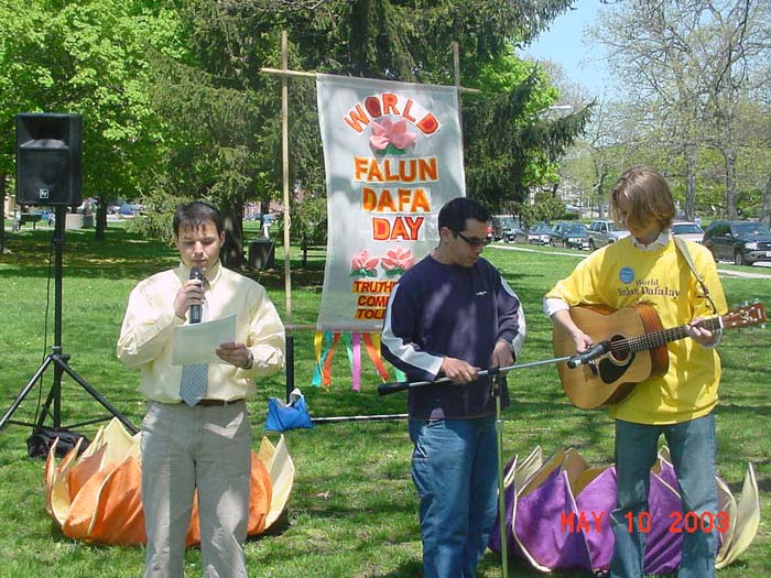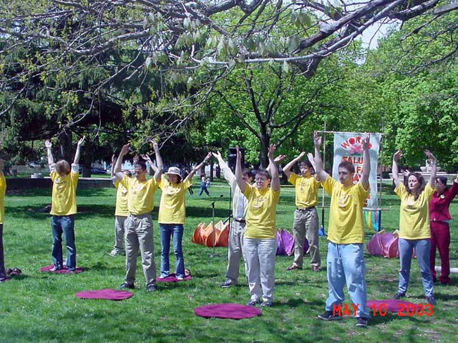 5月10日,多伦多大法弟子及亲朋好友和一些民众约500人举行盛会,迎接法轮大法日的到来。学员们先进行集体炼功,然后举行盛大游行,省议员乔治-斯密思曼在游行前的新闻发布会上致贺词,表示“法轮大法给加拿大社会带来了美好和和谐,对社会做出了很大贡献……”随后学员们到唐人街吃午饭,中区唐人街的9家华人餐馆为这次庆祝活动提供赞助。在SARS(非典肺炎)肆虐、华人受害最深时刻,多伦多法轮功学员秉着“真、善、忍”的精神,为重建多伦多旅游城市的形象而努力。