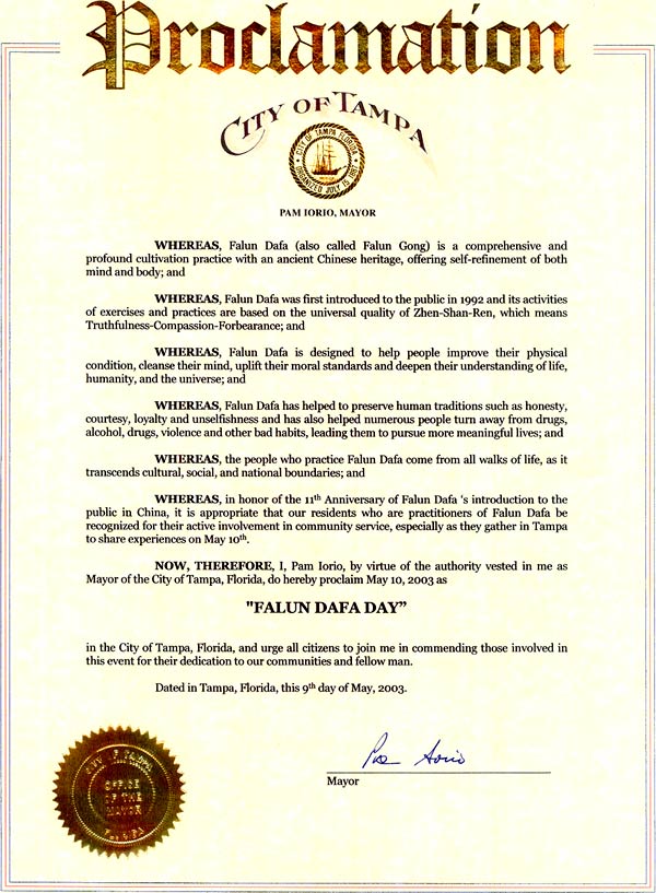 • 加拿大奥沙瓦市宣布2003年5月13日为奥沙瓦市“法轮大法日”