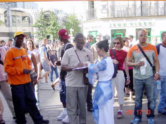 法国法轮功学员参加了从4月30日到5月11日每年一度的巴黎博览会。来自法国各地的人们有机会欣赏到了由大法学员们准备的展台。随着优美的炼功音乐,有的学员展示功法,其他学员讲解着修炼的原理,并使人们了解了在中国发生的镇压和世界各地法轮功修炼者的高尚行为。一个前犹太教士说:“来此之前,我没想到世上还有真正心存善心的人。可现在你们给我讲了你们的修炼和在中国发生的一切,我又感到人类善心犹存。”