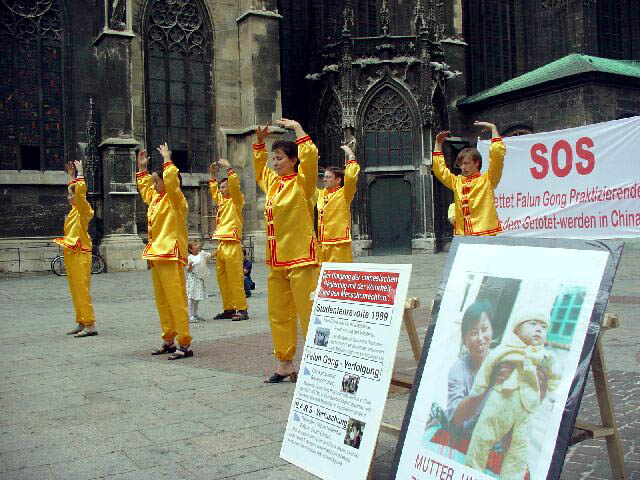 一个由奥地利弟子组成的乐队在斯蒂芬广场上举办了一个露天音乐会,内容主要是他们自己作词作曲的音乐作品,包括呼吁停止在中国对法轮功弟子的镇压,以及他们感受到的大法的美好。