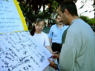 7月5日,费城法轮功学员被邀请参加在费城节日港口举办的主题为“教育给孩子们创造无穷机会”的“孩子日”活动。学员们专为这次“孩子日”赶制了5张介绍大法小弟子修炼的展板,引来众多家长和孩子观看。展台前,大法弟子陈老先生设笔墨纸砚,为孩子们书“真、善、忍”留念。法轮功学员还应邀表演功法及艺术节目。活动组织者非常高兴:“欢迎你们明年还能来,法轮功非常放松,911之后,人们非常需要平心静气,大人孩子们都非常需要精神力量。法轮功的表演非常美,服装很漂亮,很平和,有精神力量同时也有教育意义。”