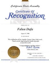 • 加州众议院第三十八选区议员褒奖法轮大法