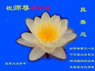 在邪恶迫害大法的四年多来,师父,弟子无法用语言表达您对我们的佛恩!我们会更加努力地做好我们应该做的三件事,学好法、发正念、讲真象救众生。跟随师父走完正法的历程,完成我们的史前大愿!