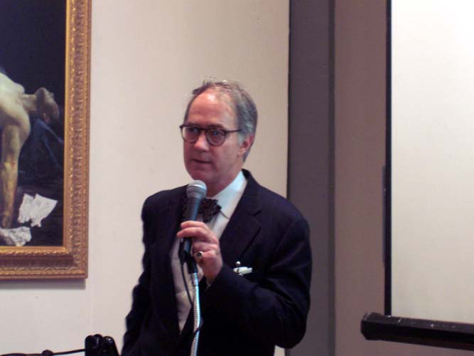 ![]() 参展的部分画家 | ![]() 国家艺术俱乐部主席詹姆斯在开幕式上发言 |