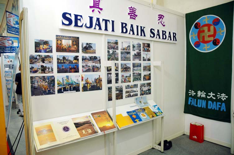 印尼法轮功协会参加了书展,在举办法轮大法书籍展的同时,也举办了“坚忍不屈的精神”艺术展,得到了热烈反响。