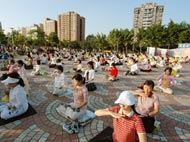 来自波兰的一对姐妹花,看到学员演炼五套功法,直说太优美了,她们也想利用在台湾短暂的停留时间,好好学炼。来自美国的青年说,他在纽约看过法轮功简介,一直很想进一步了解,没想到在台湾也能遇到法轮功,真是太棒了。来自西藏的喇嘛说,他非常理解同情在中国大陆无端遭受非法镇压的法轮功。