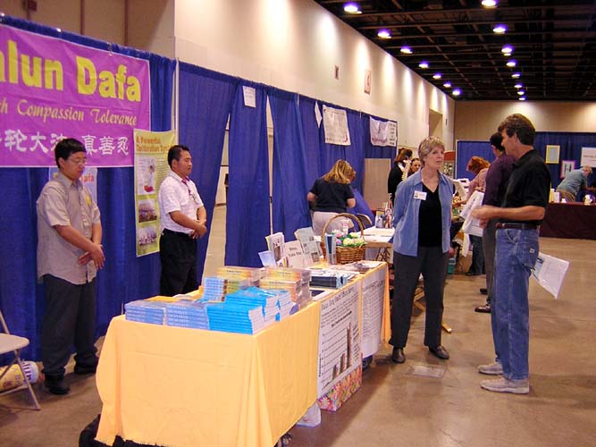 由于参加此次活动的人们思想很开明,学员们能详细的向他们讲真象。也有几位参展者来到我们的展位了解法轮大法。有些人因想到了不同的问题不止一次回来问我们。