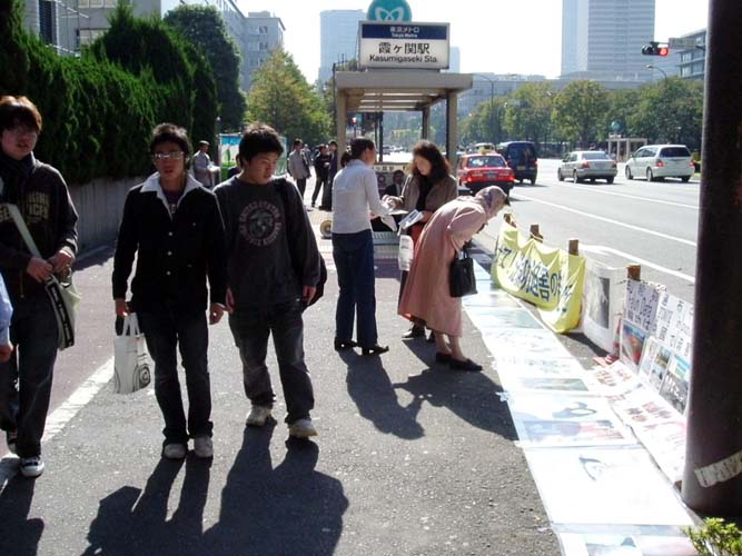 【明慧网2004年11月5日讯】连续2个月,日本学员坚持向社会各界讲清法轮功真象。在日本审判所门前,学员们摆放了法轮大法洪传世界,以及反映法轮功学员在中国无端受到残酷