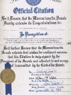 玛萨诸塞州参议院献上最美好的祝愿,祝不断取得成功。此褒奖状由参议院主席签署并由参议院秘书作证明和传递。