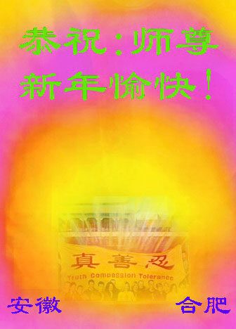 我代表上海市南汇区的大法弟子向师父问好,我们一定会按您的要求把三件事做好,请师父放心。恭祝伟大的师尊新年快乐!