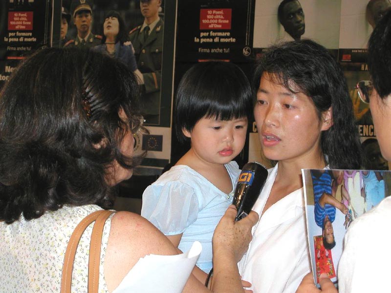 (法度):两年来我和妈妈周游了37个国家。妈妈变卖了家中所有的家产到世界各地奔波呼吁制止迫害,小法度不但洪法和参加游行,向好心的人发真象资料;我还举着爸爸的遗像到过中国驻瑞士的大使馆前讲真象、在和平请愿中我还举起了“真、善、忍”的横幅。