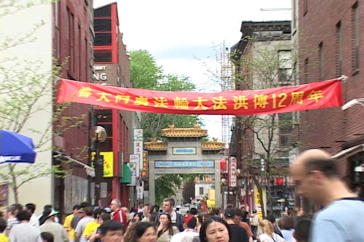 【明慧网2004年5月17日】5月15日,加拿大蒙特利尔法轮功学员举行游行活动,庆祝大法洪传十二周年。